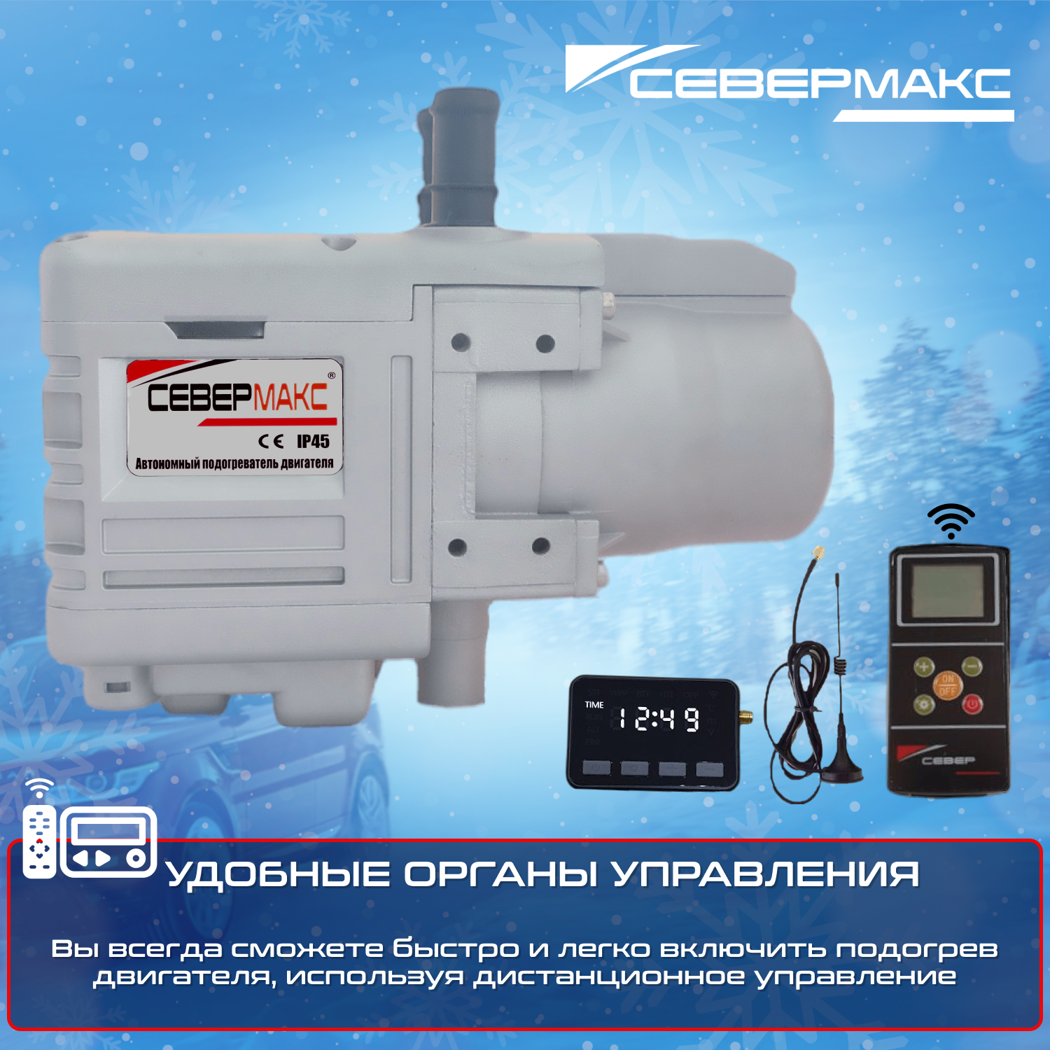 Автономный предпусковой подогреватель двигателя СЕВЕРМАКС 5500-2, 12V бензин/дизель, с пультом ДУ