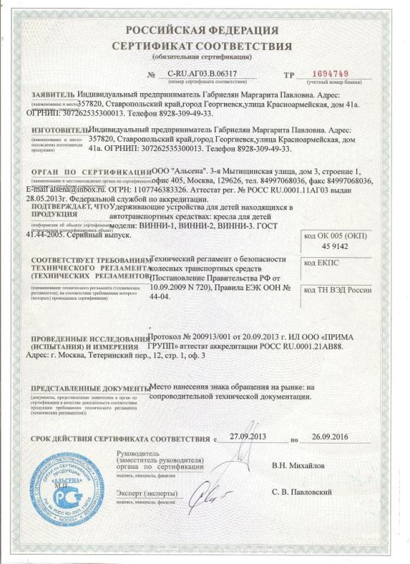 Сертификат винни
