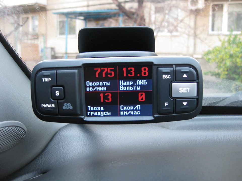Вся необходимая информация, параметры и показатели отображаются на 2.4-дюймовом экране устройства. Возможно отображение данных в виде символов, стрелок и графиков. Есть 4 предустановленные цветовые схемы, а также возможность ручной настройки по RGB-каналам. Отдельного внимания достойна функция «Мультидисплей», позволяющая одновременно вывести на экран до 9 выбранных параметров.