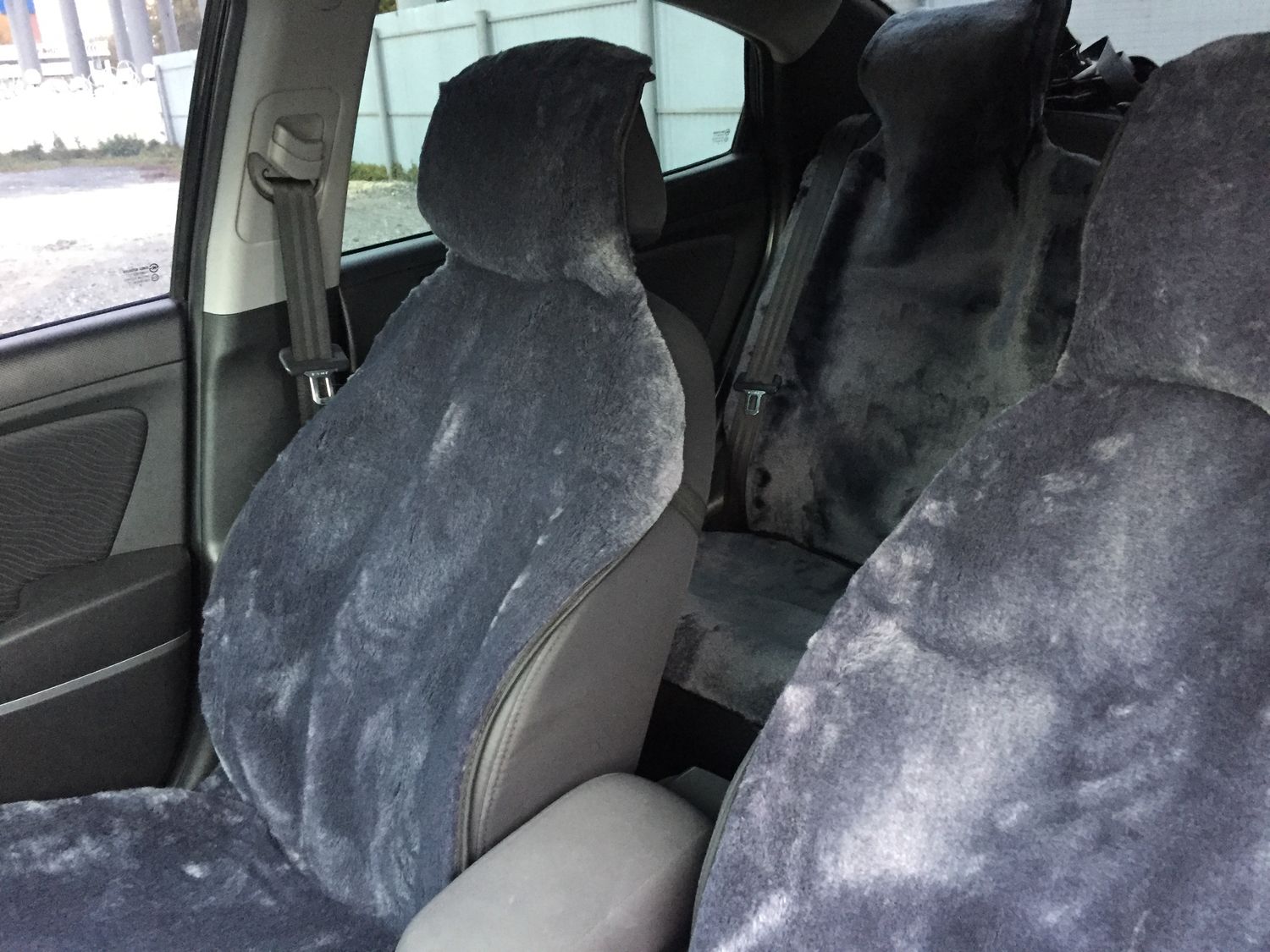 Накидка на сиденье, шерсть передняя (серый) прорезиненный подклад