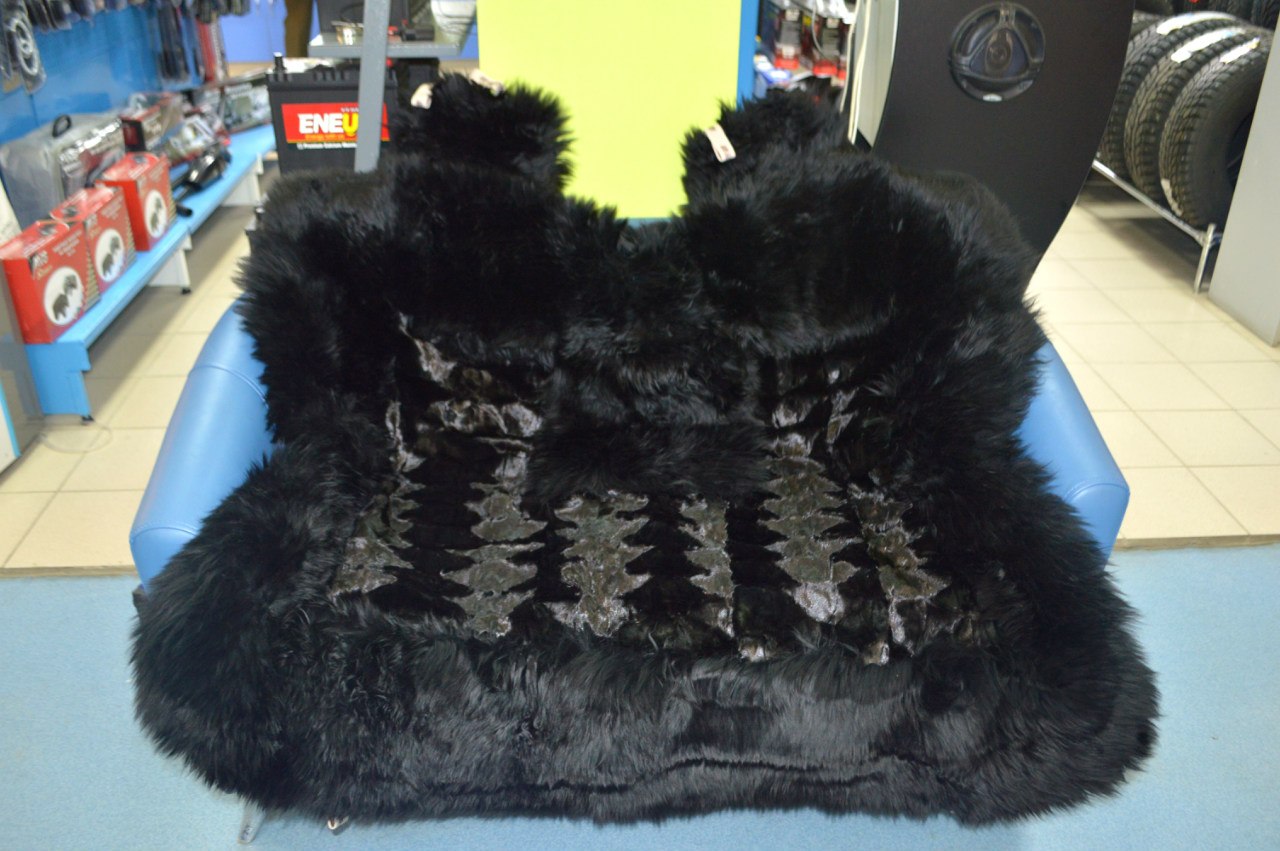 Накидки на сиденье дл. мех ОВЦЫ+ЛИСА стриж. комплект перед+зад (Черн+Черн)
