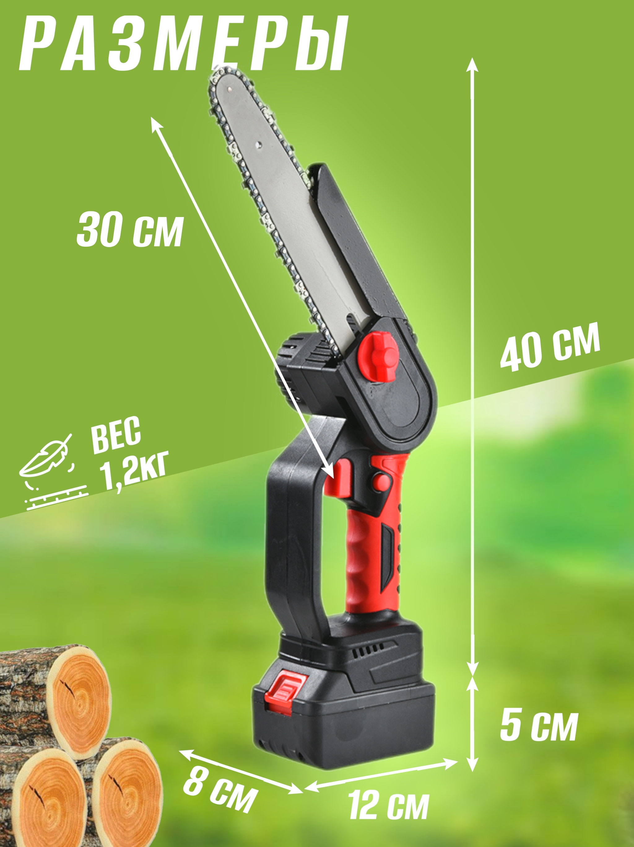 Аккумуляторная цепная пила 24V 1500мАч с бесщеточным мотором – ваш помощник для работы в саду, на даче, в лесу. Она заменяет сразу же несколько инструментов: ножовку, топор, сучкорез. Длина модели – 8 дюймов или 20,32 см. Небольшой размер делает ее универсальной. Питание – 24 вольта при емкости аккумулятора 1,5 Ач. Батарея изготавливается из лития, поэтому прослужит вам долгие годы. Лезвие электропилы позволяет без особых усилий распиливать дрова и доски, а также обрезать ветки. У данной пилы мощный бесщеточный двигатель с медным сердечником, что указывает на высокое качество товара. Плюс ко всему он имеет функцию автоматического отключения устройства, если произойдет перегрев. Вы можете работать вдали от источников подзарядки, т.е. без проводов. В процессе использования ручная электропила адаптирована для удержания одной рукой. В комплекте идет чемодан для простоты хранения и переноски компактного продукта. Аккумуляторная цепная пила 24V 1500мАч с бесщеточным мотором – это идеальное решение по распиливанию деревьев и других материалов. Вы можете с уверенностью трудиться на приусадебном участке, в домашней мастерской и на стройке. Именно поэтому продукт пользуется широким спросом среди многочисленных категорий населения и специальностей.