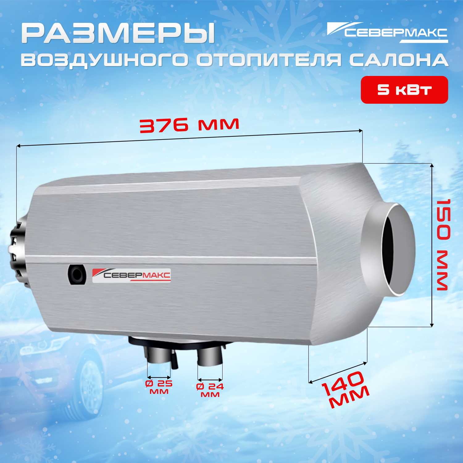 Воздушный отопитель салона СЕВЕРМАКС 5000D-3 AL, 12V с пультом ДУ (с обратной связью)